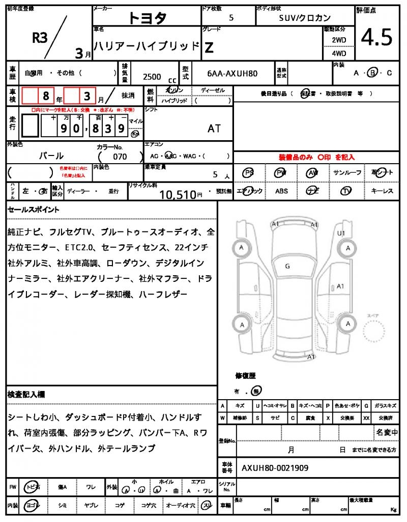 | VIN/Serial No. | AXUH80-0021909 |