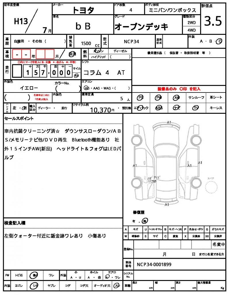 | VIN/Serial No. | NCP34-0001899 |