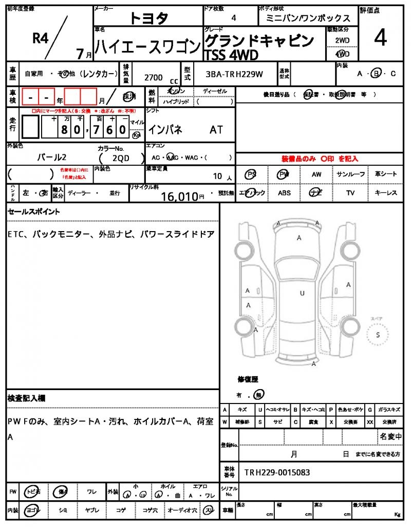 | VIN/Serial No. | TRH229-0015083 |