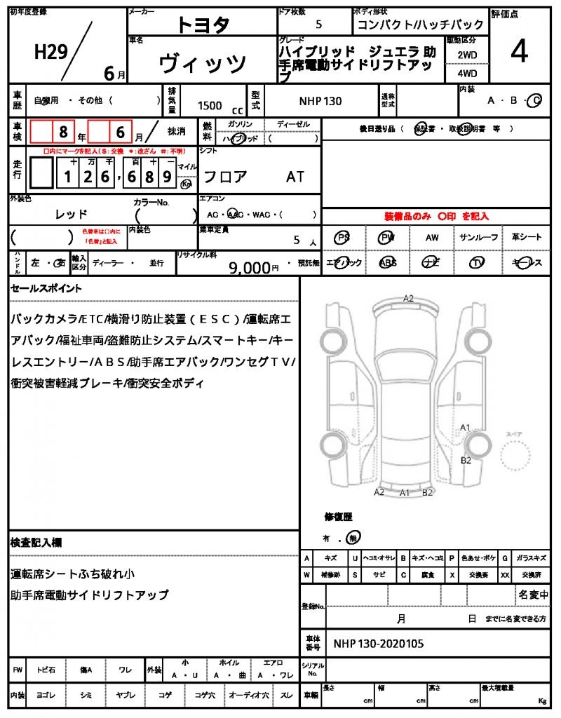 | VIN/Serial No. | NHP130-2020105 |