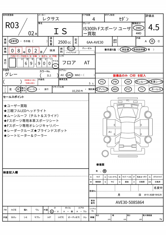 | VIN/Serial No. | AVE30-5085864 |