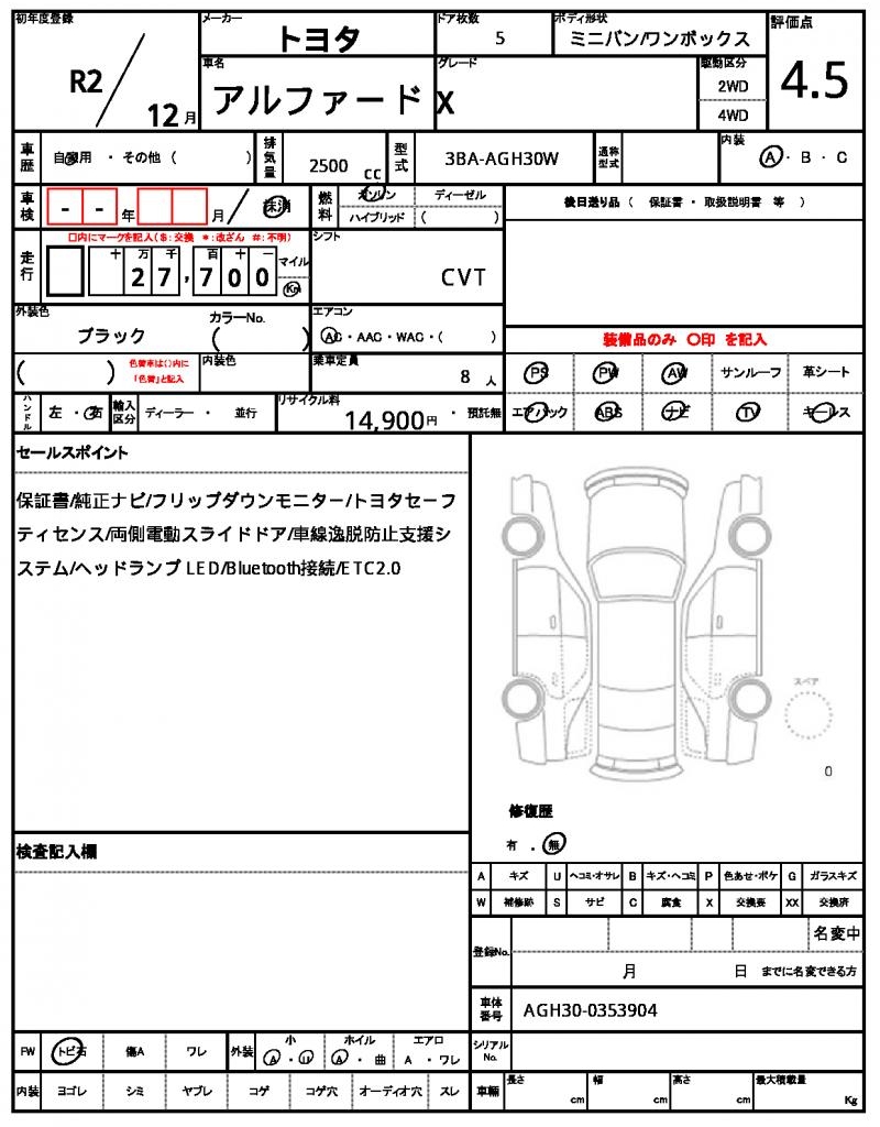 | VIN/Serial No. | AGH30-0353904 |