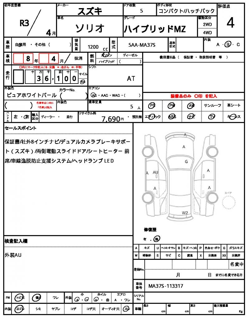 | VIN/Serial No. | MA37S-113317 |
