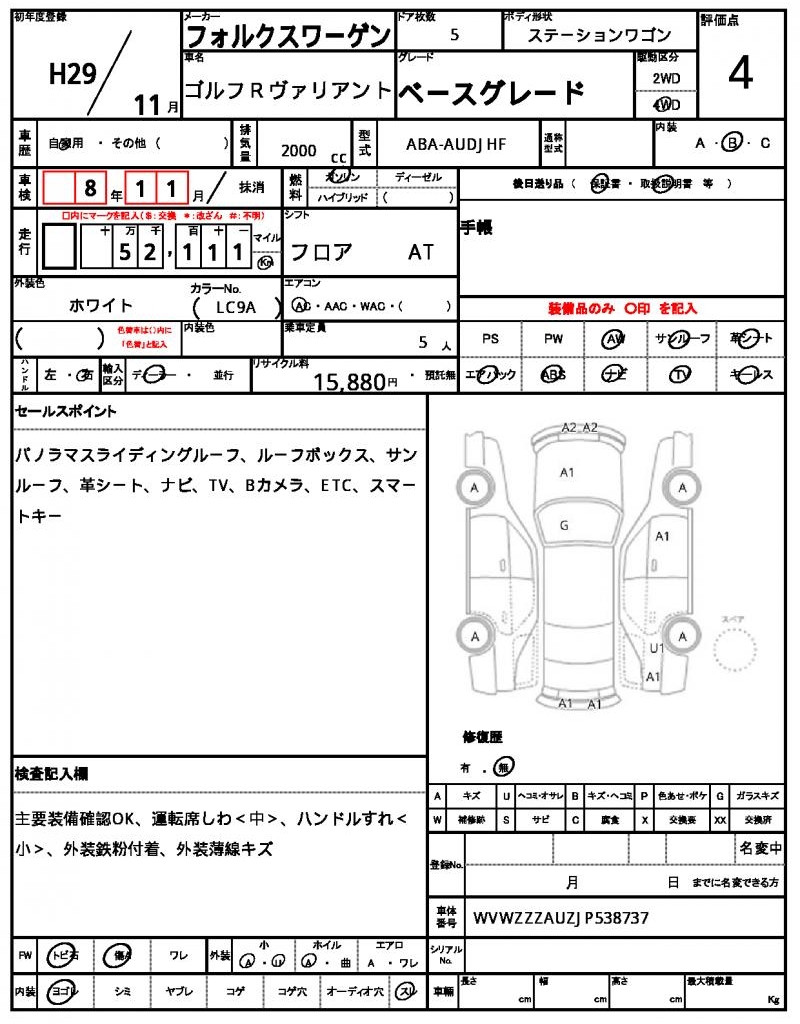 | VIN/Serial No. | WVWZZZAUZJP538737 |