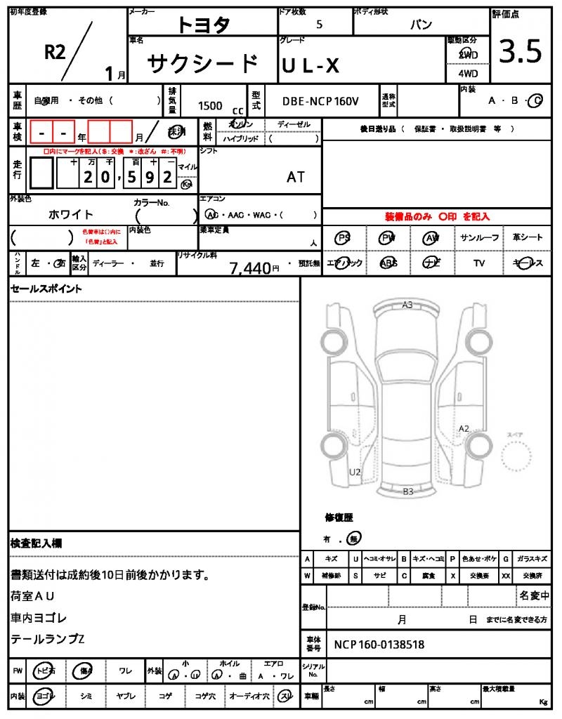 | VIN/Serial No. | NCP160-0138518 |