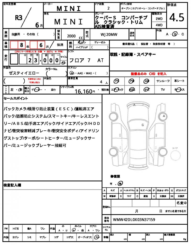 | VIN/Serial No. | WMW42DL0X03N37159 |
