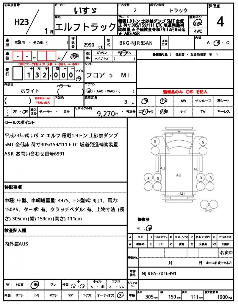 VIN/Serial No. NJR85-7016991