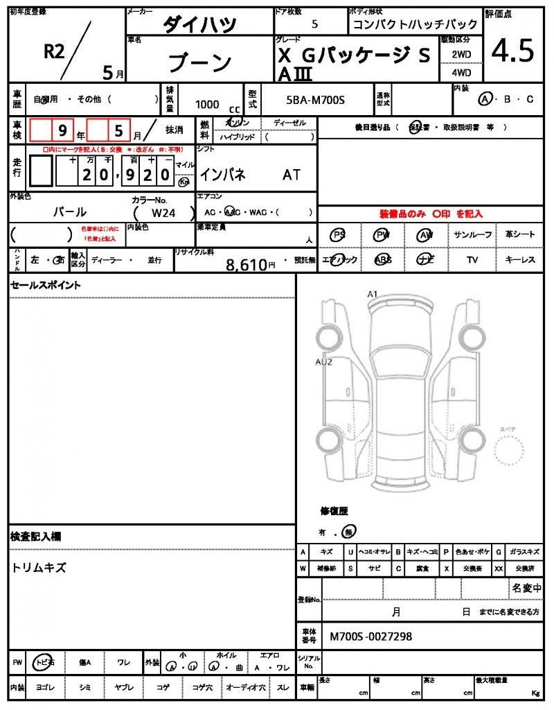 | Model code | 5BA-M700S |