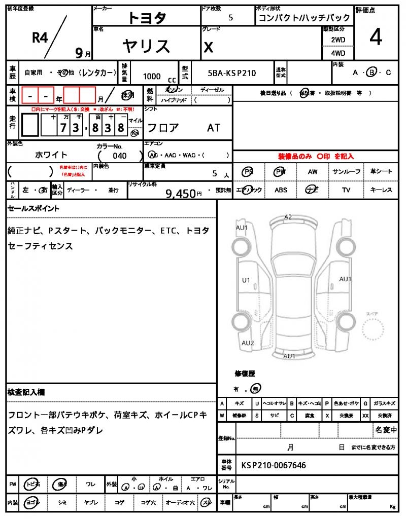 | VIN/Serial No. | KSP210-0067646 |