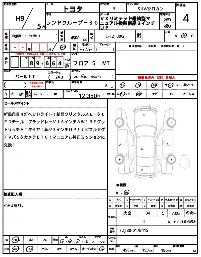 | VIN/Serial No. | FZJ80-0178415 |