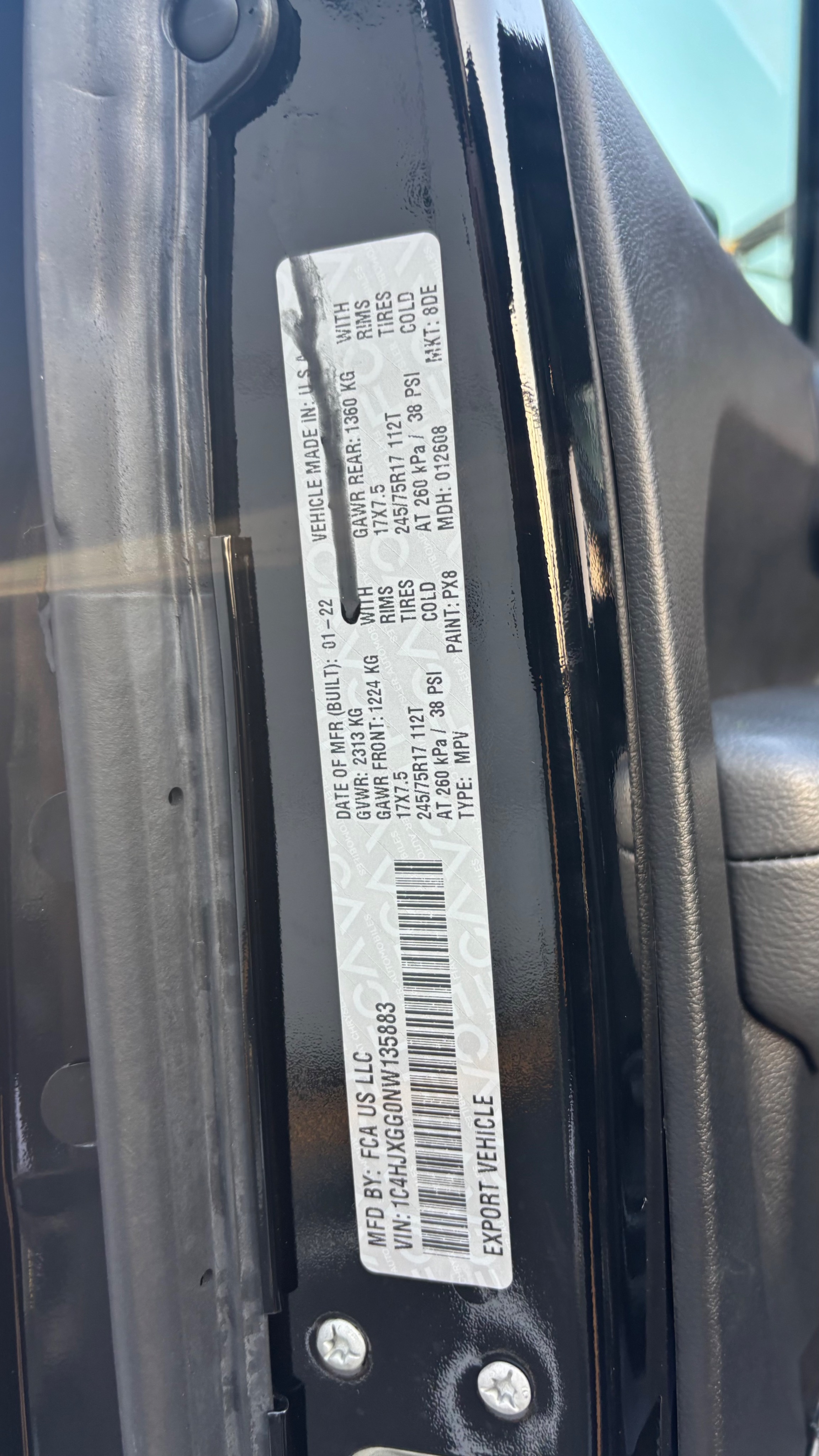 | VIN/Serial No. | 1C4HJXGG0NW135883 |