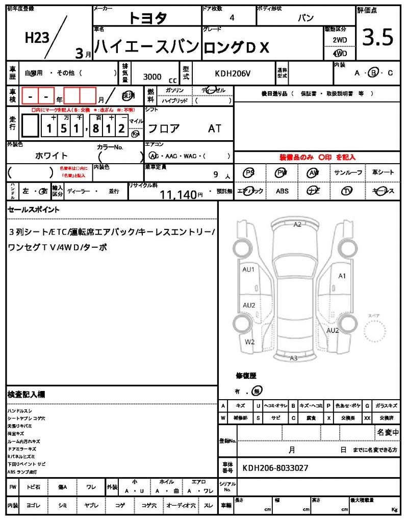 | VIN/Serial No. | KDH206-8033027 |
