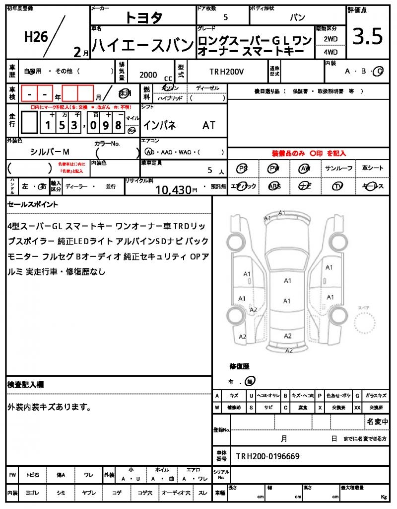 | VIN/Serial No. | TRH200-0196669 |