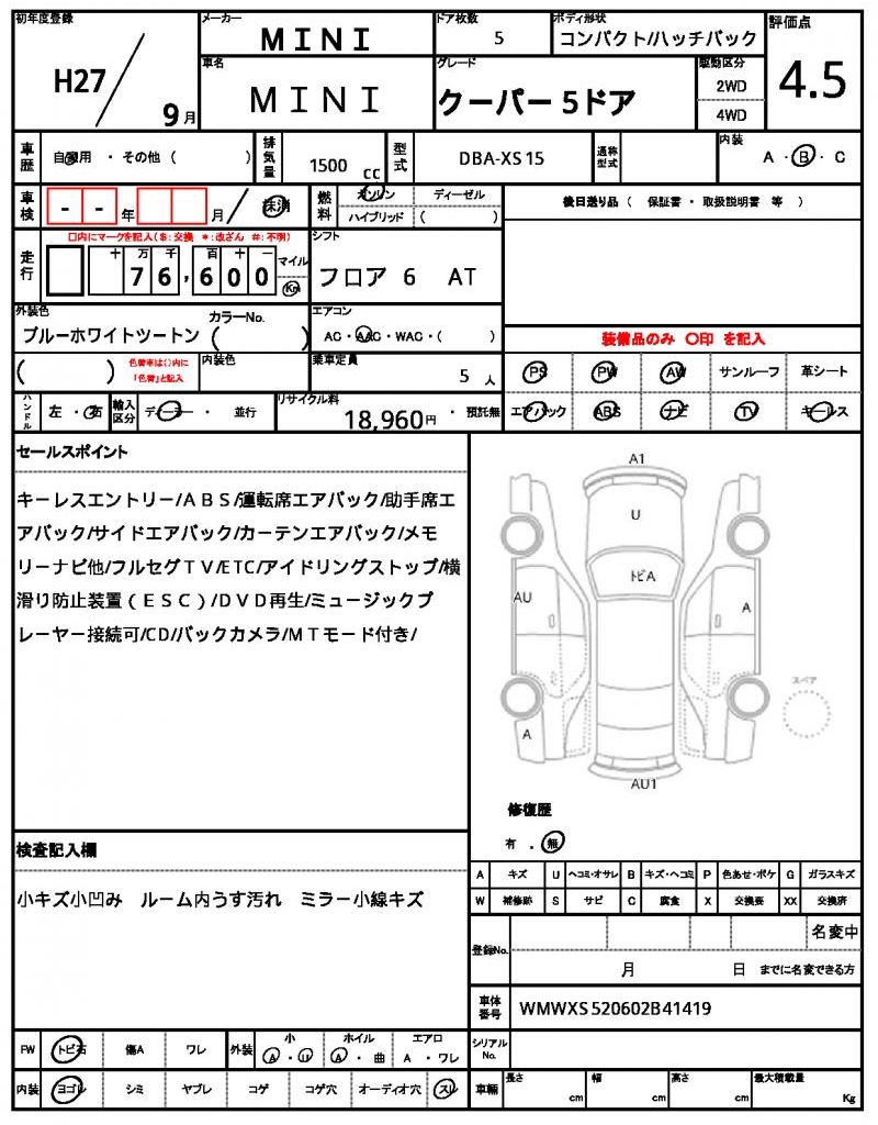 | VIN/Serial No. | WMWXS520602B41419 |