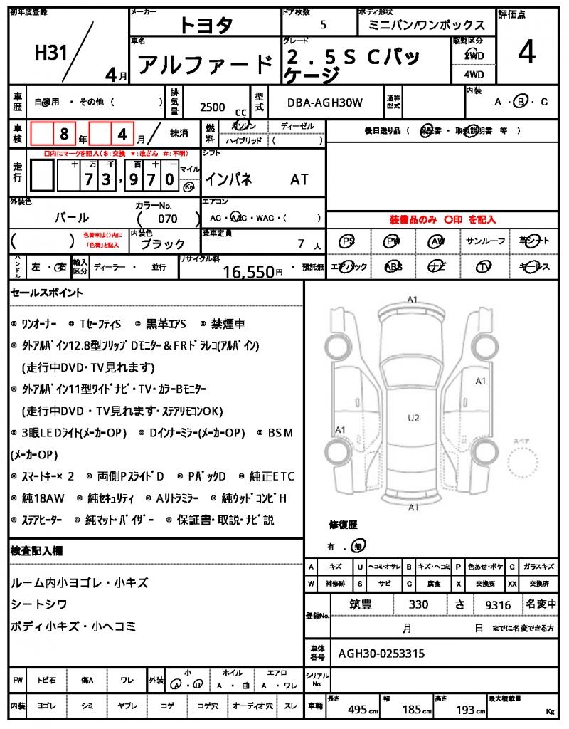 | VIN/Serial No. | AGH30-0253315 |