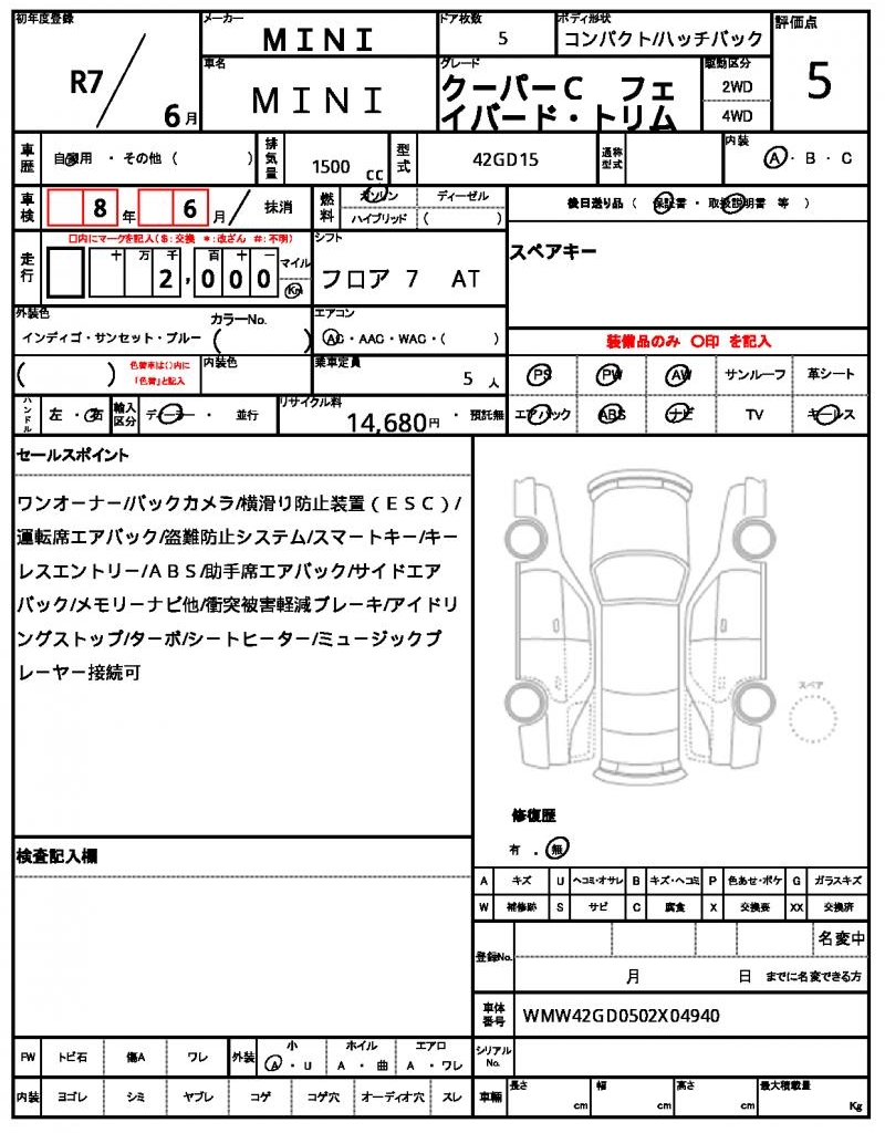 VIN/Serial No. WMW42GD0502X04940