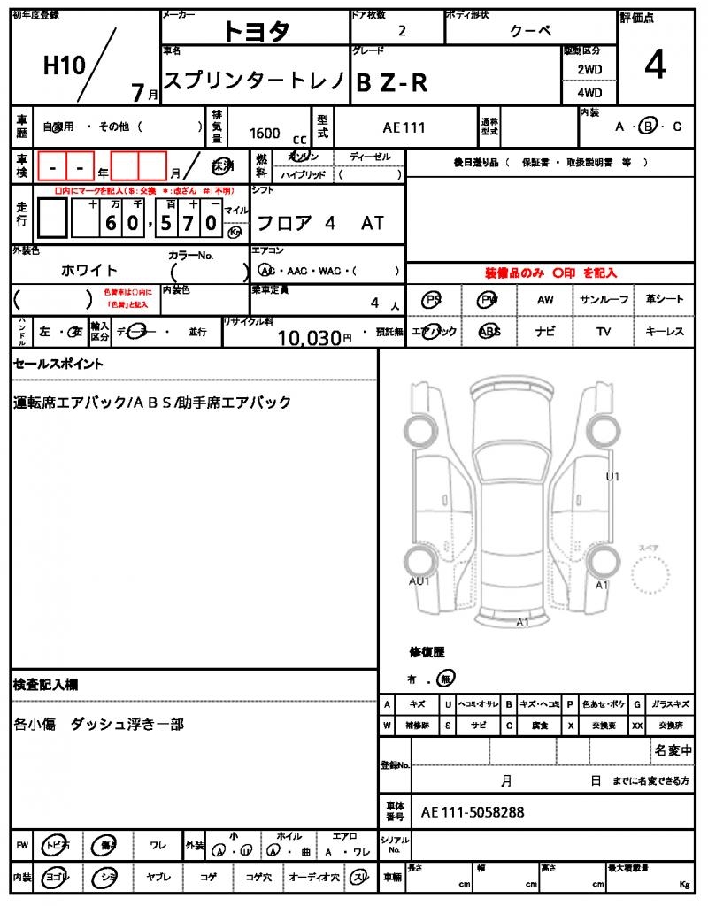 | VIN/Serial No. | AE111-5058288 |
