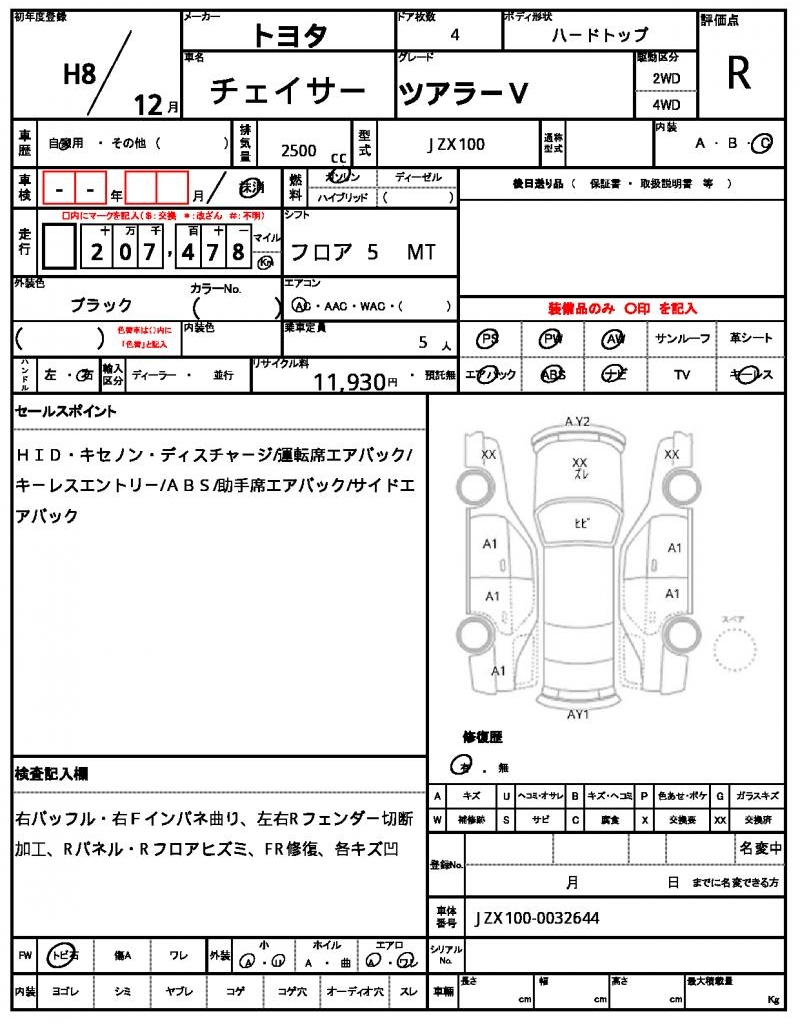 | VIN/Serial No. | JZX100-0032644 |
