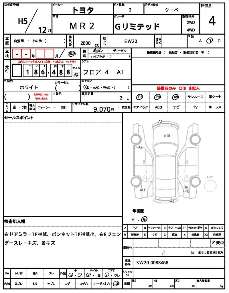 | VIN/Serial No. | SW20-0088468 |