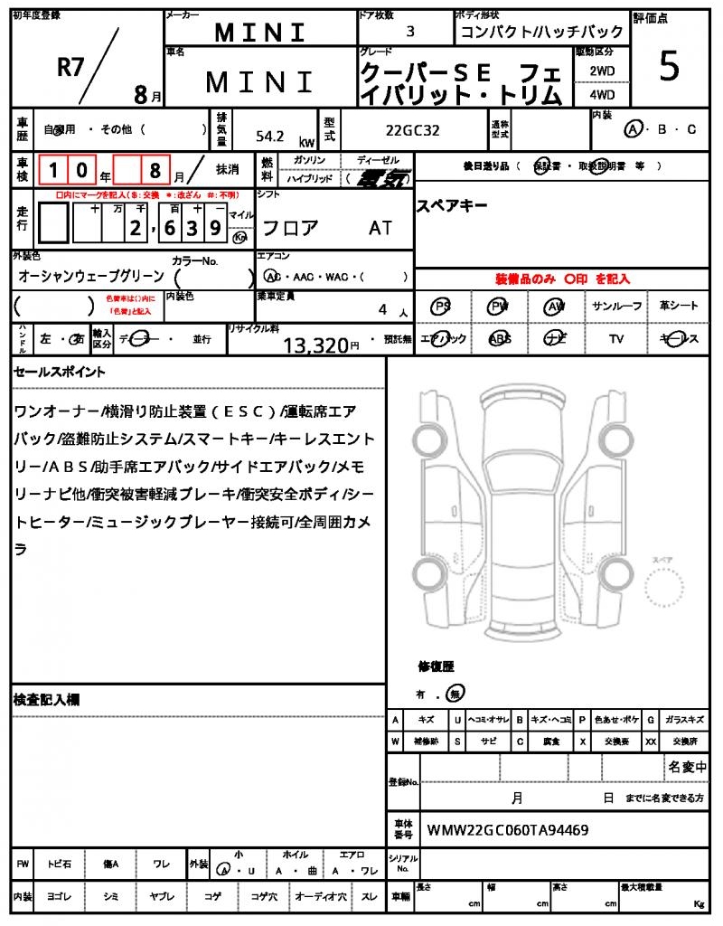 | VIN/Serial No. | WMW22GC060TA94469 |