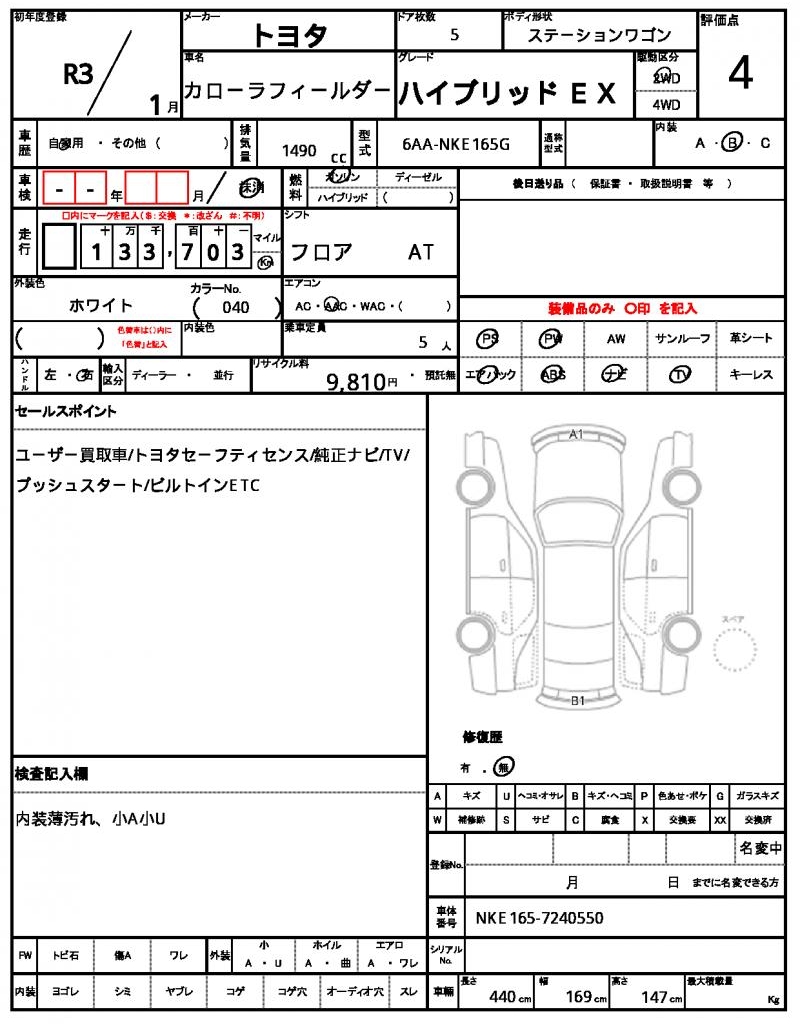 | VIN/Serial No. | NKE165-7240550 |