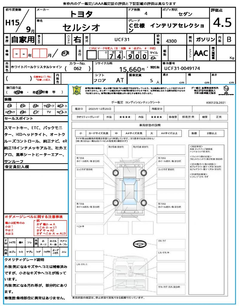 | VIN/Serial No. | UCF31-0049174 |