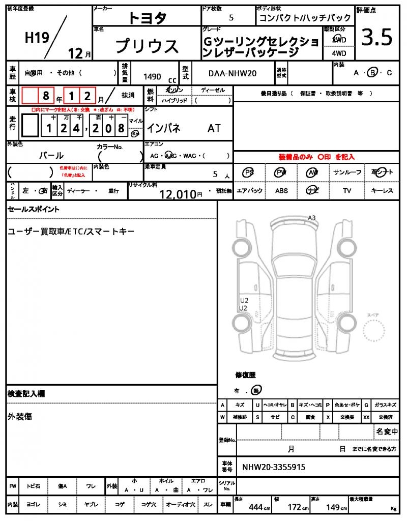 | VIN/Serial No. | NHW20-3355915 |