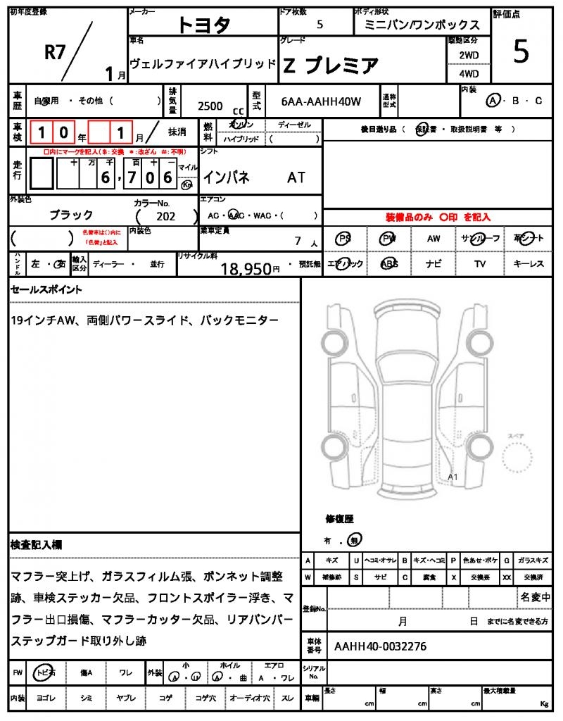 | VIN/Serial No. | AAHH40-0032276 |