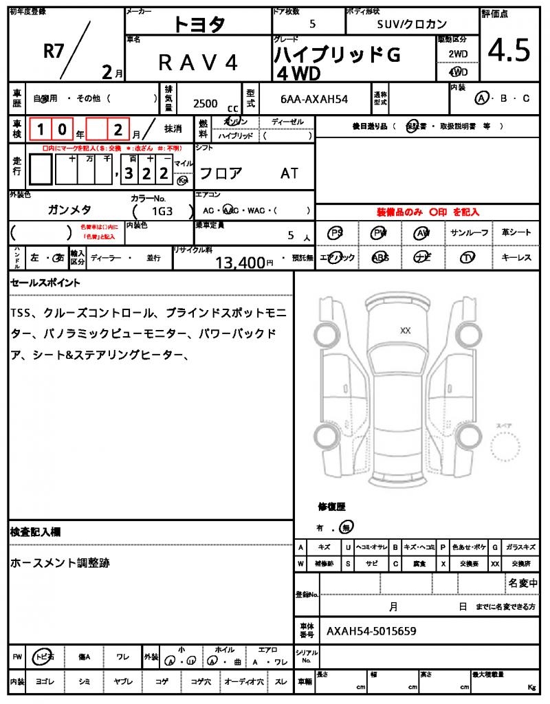 | VIN/Serial No. | AXAH54-5015659 |