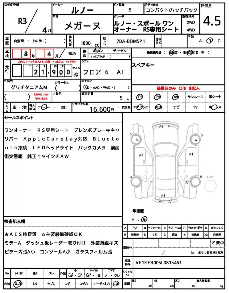 | VIN/Serial No. | VF1RFB005L0815461 |