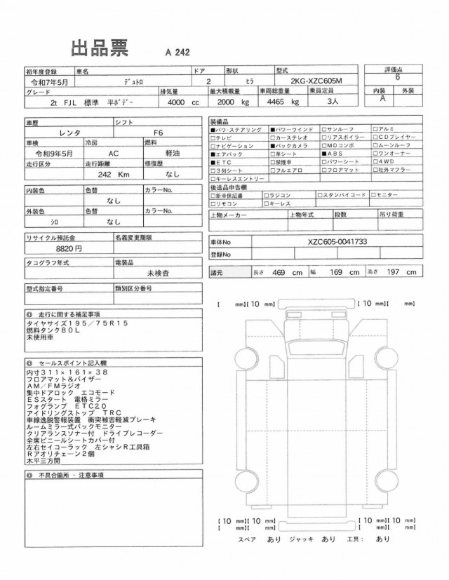 | VIN/Serial No. | XZC605-0041733 |