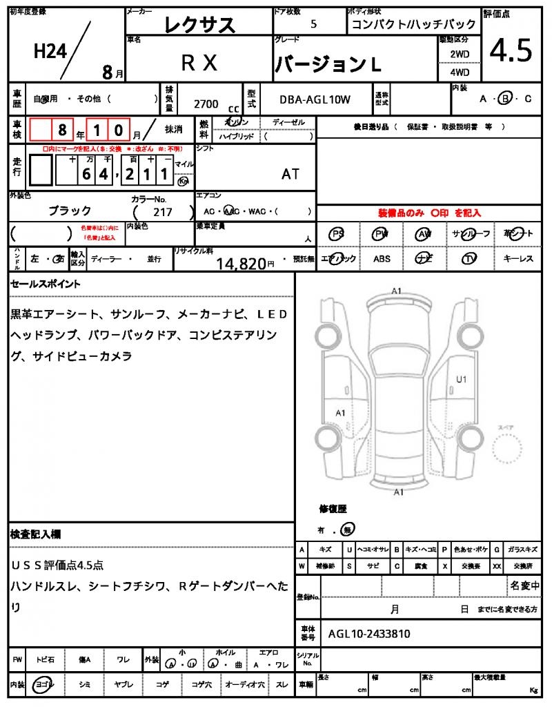 Model code DBA-AGL10W