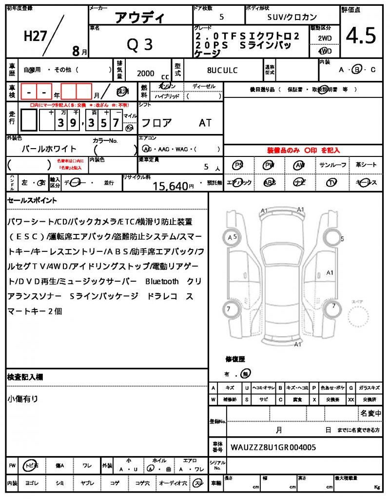 | VIN/Serial No. | WAUZZZ8U1GR004005 |