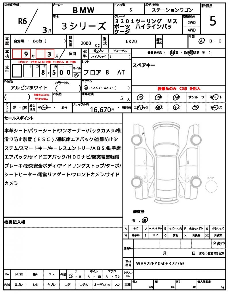 | VIN/Serial No. | WBA22FY050FR72763 |