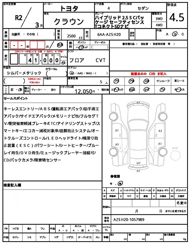 | VIN/Serial No. | AZSH20-1057989 |
