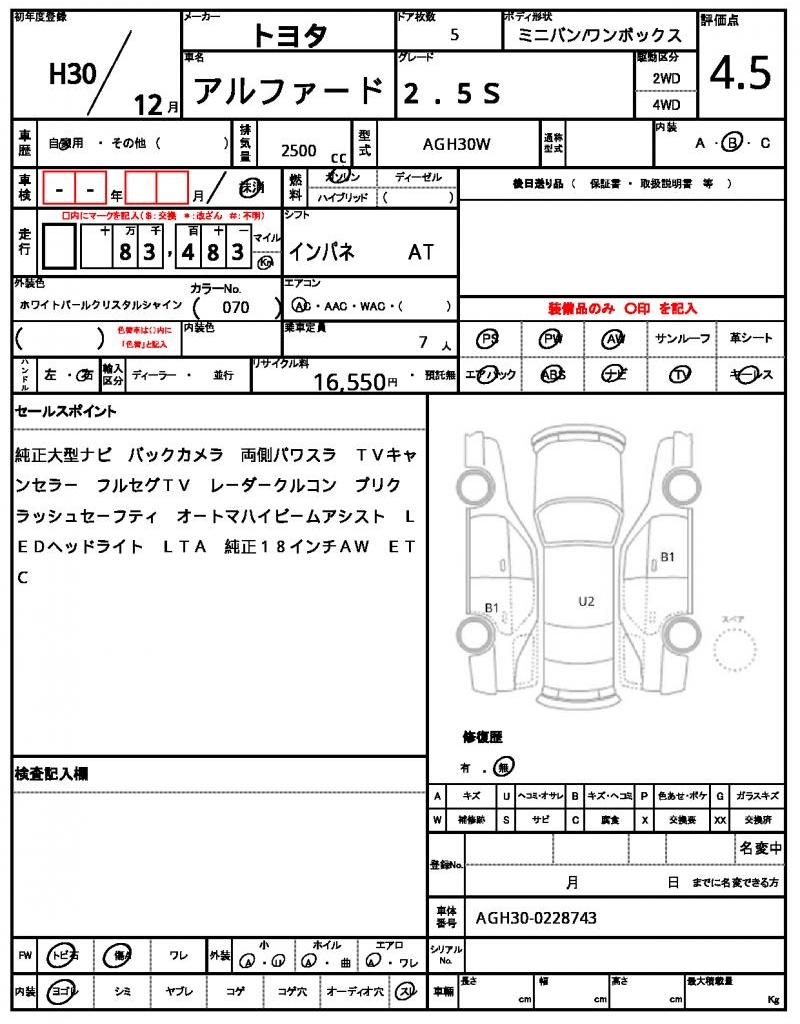 | VIN/Serial No. | AGH30-0228743 |