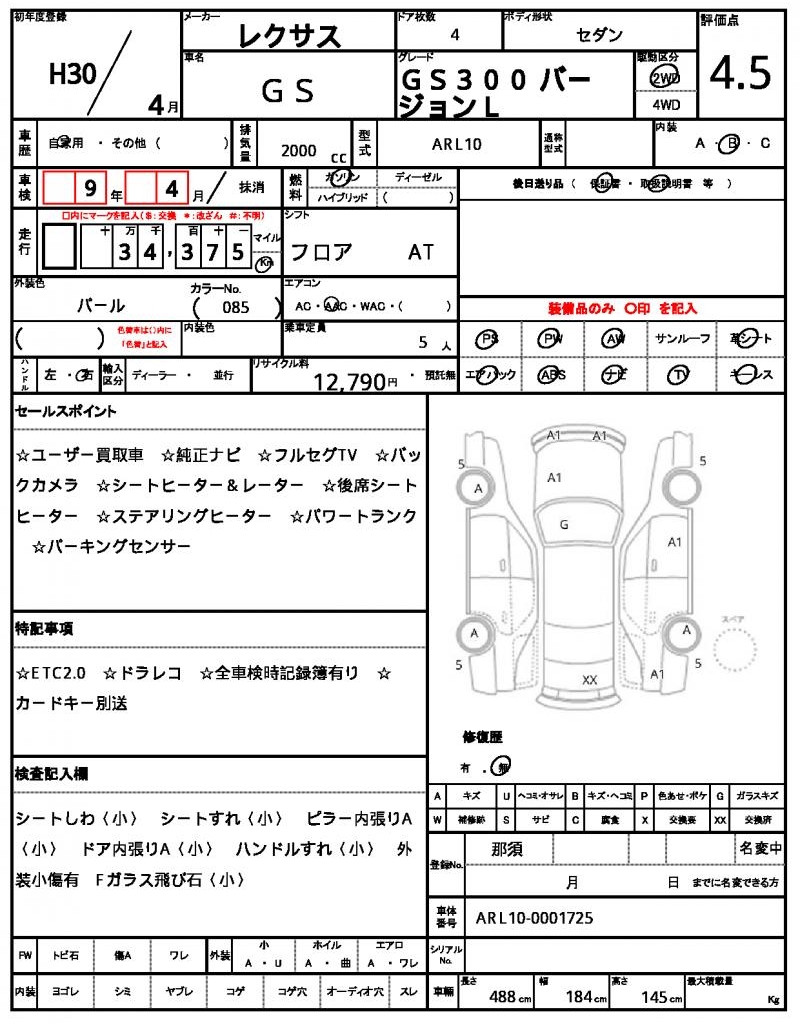 | VIN/Serial No. | ARL10-0001725 |