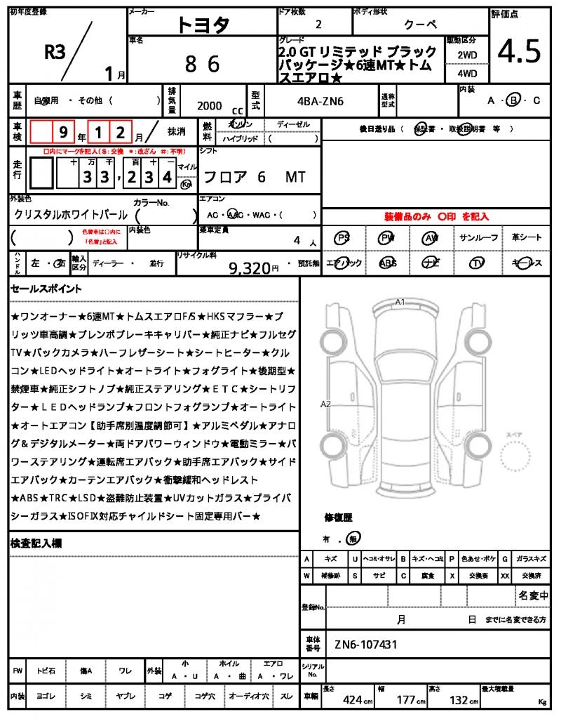 | Model code | 4BA-ZN6 |