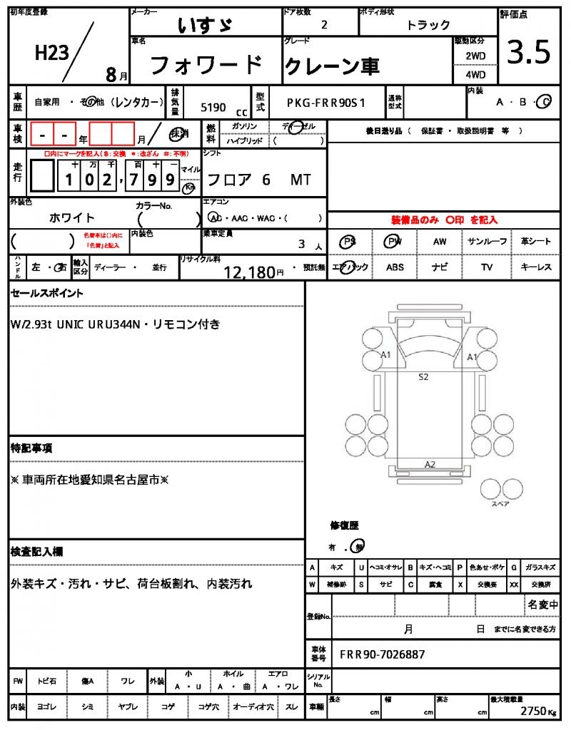 | VIN/Serial No. | FRR90-7026887 |