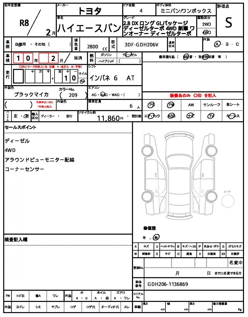 | VIN/Serial No. | GDH206-1136869 |