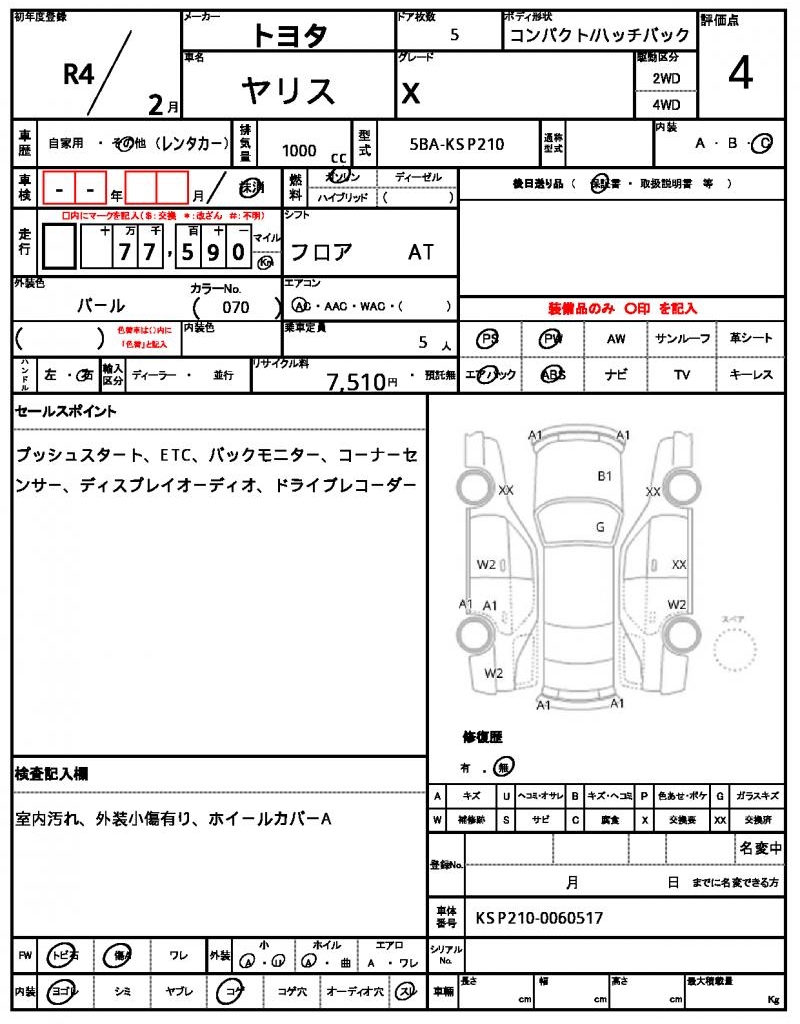 | VIN/Serial No. | KSP210-0060517 |