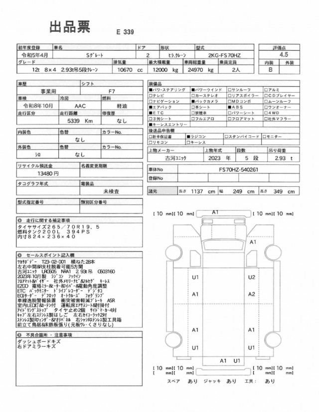 | VIN/Serial No. | FS70HZ-540261 |