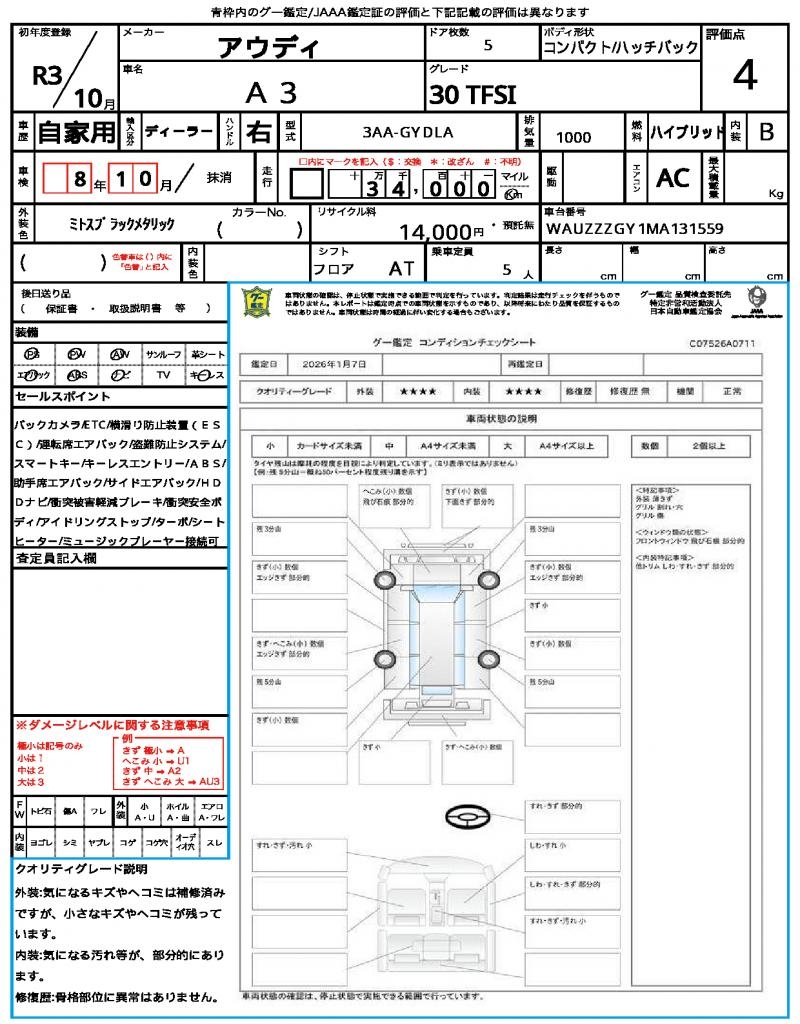 | VIN/Serial No. | WAUZZZGY1MA131559 |