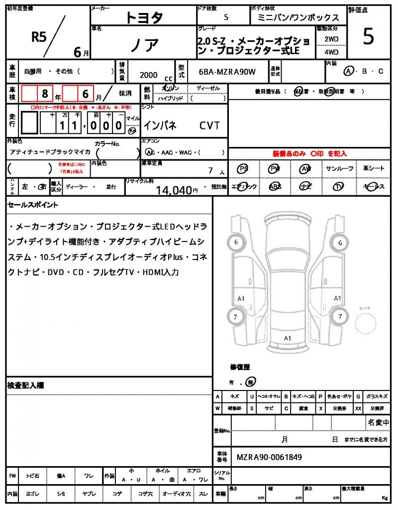 | VIN/Serial No. | MZRA90-0061849 |