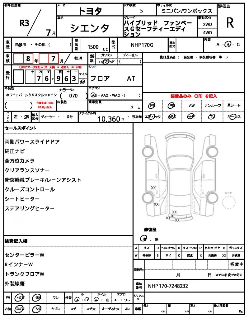 | VIN/Serial No. | NHP170-7248232 |