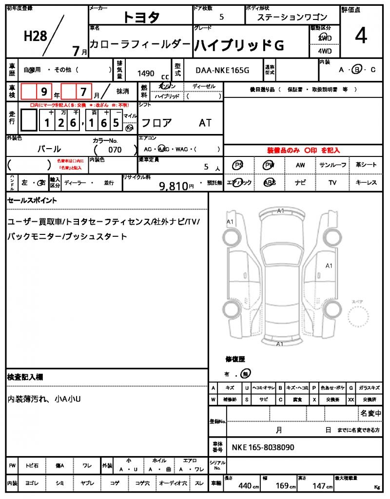 | VIN/Serial No. | NKE165-8038090 |