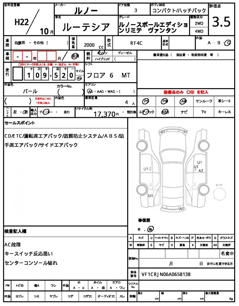 | VIN/Serial No. | VF1CRJN06A0658138 |
