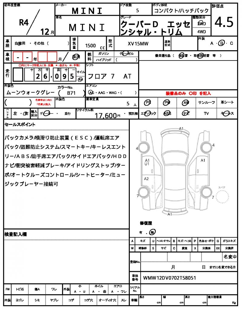 | VIN/Serial No. | WMW12DV0702T58051 |