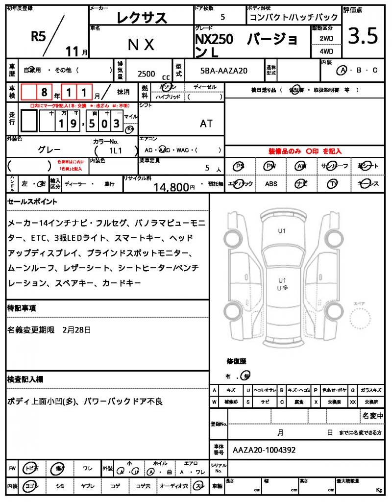 | VIN/Serial No. | AAZA20-1004392 |