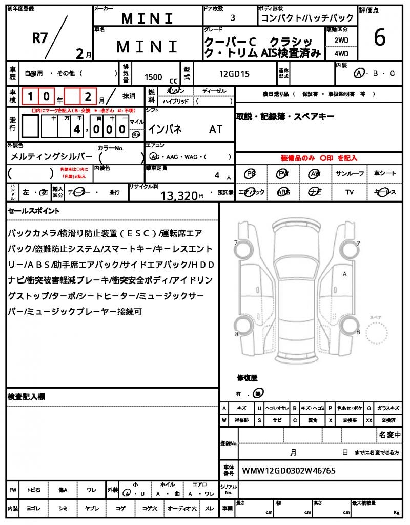 | VIN/Serial No. | WMW12GD0302W46765 |